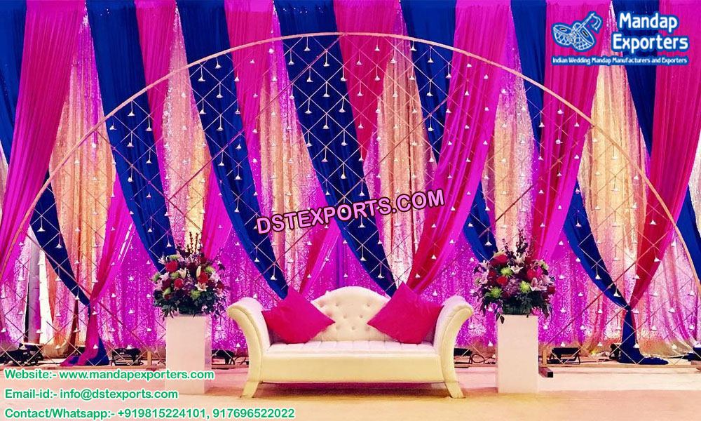 We are making it with perfect and excellent techniques the procedure includes cutting, grinding, polishing, laser engraving, sandblast, Hot-bend forming, Sticking, Cleaning, and Packing. We are using high-quality Material in manufacturing these backdrop stands and also painted with superior quality deco-paint. These are self standing and very easy to stand on stages.